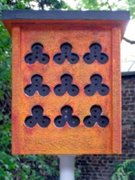 Fritz Eicher greift in seiner Arbeit die wissenschaftlichen Erkenntnisse auf, dass Bienen eine bestimmte Anzahl und Anordnung von Dingen, ebenso spezifische Formen und Farben wahrnehmen können und sich bei Nahrungssuche und Fortpflanzung daran orientieren. Die Wildbienenhäuser sind deshalb durch ornamentale Anordnung der Einfluglöcher und farbige Oberflächen für die Bienen besonders attraktiv.