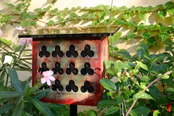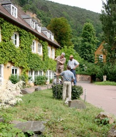 Dem Garten- und Museumsbesucher vermitteln sich die Aktivitäten vor den Legeröhren der Bienenhäuser durch Überwachungskameras dank einer Live-Übertragung, die hinter der Glasscheibe des Museumsraumes am Monitor nachvollziehbar wird.