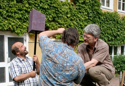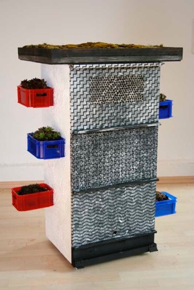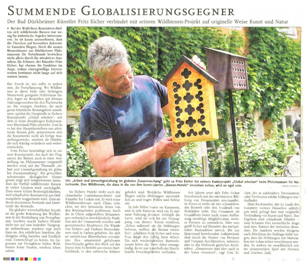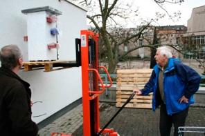 Erste Aufstellung eines Bienenhauses für Wildbienen als Kunstprojekt im Pfalzmuseum für Naturkunde