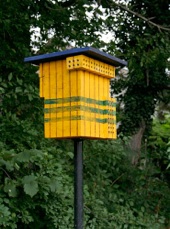 Am 29. 5. 2008 wurde im Innenhof des Museums durch den Zoologen Roland van Gyseghem, den Botaniker Dr. Volker John und dem Künstler Fritz Eicher das erste Bienenhaus aufgestellt. Mit dem Leiter des Museums Dr. Reinhard Flößer wurde das erste Richtfest würdig mit einem Glas Wein gefeiert. Das Bienenhaus schwebt dabei im Museumshof in etwa 2 Meter Höhe auf einem schlanken Stahlrohr. Die äußere Hülle des Häuschens ist mit violettem Quarzsand verputzt und seine Front besteht aus einem dreifachen Durchbruch in wiederholender Reihung versehen. Dahinter verbirgt sich ein massiver Eichenblock, in dem sich die Wohngänge der Bienen befinden. Je nach Durchmesser der Bohrungen und Standort bieten sich damit Nistplätze für Wildbienen und Schlupfwespen.