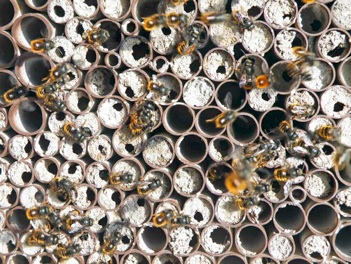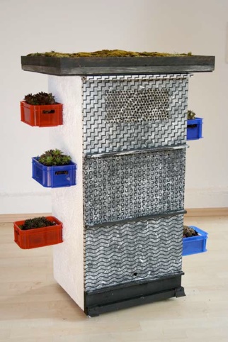 Im Projekt »zeit.arbeit« die Arbeit und die Ökologie im Mittelpunkt. Fritz Eicher extrahiert Arbeitsprozesse und ökologische Bedingungen in eine künstlerische Parallelwelt. Kooperation Tier-Mensch, Arbeitsprozess, Fähigkeiten der Wildbienen, ökologische Bedingungen und Kontrollmechanismen entblößen sich visuell am Überwachungsmonitor.