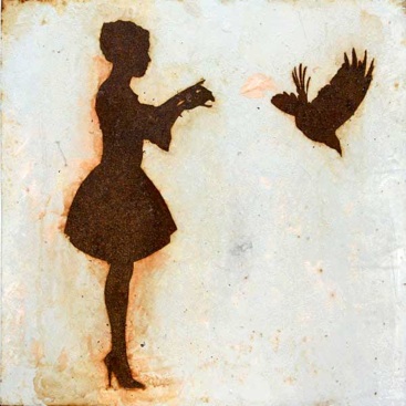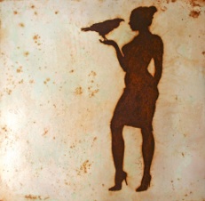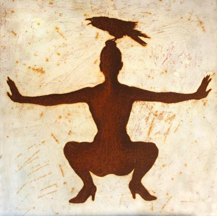 Ohne Titel (Frau mit fliegendem Raben)