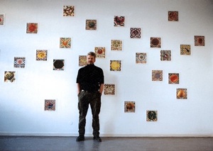 All diese Teile der „Mikrobensammlung“ flossen in die Bildinstallation „Von Anton bis Xenia“ mit ein. Da Wissenschaftler dazu neigen, die Objekte ihrer Forschung, seien sie auch noch so bedrohlich, zu vermenschlichen und mit Vornamen zu benennen, hat Fritz Eicher diesen Akt in seiner Arbeit nachvollzogen. Versöhnlich schwebt der Virus vor einer ornamentalen Fläche mit individueller Namensbezeichnung ...