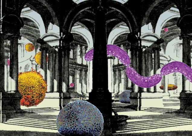 In den Vehikelbilder hat der Mensch eine utopische Symbiose mit den Mikroben erreicht. Sie dienen ihm als Transportmittel in einer symmetrisch geordneten Natur, die einem Zengarten gleicht. Der Betrachter wird auf einen Weg der Verinnerlichung geführt. Die bizarren Welten wirken durch ihre Ausgeglichenheit wie Meditationsbilder einer fernen Zukunft.